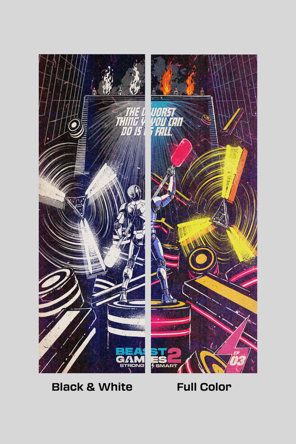 Now he brings that same unmistakable energy to Beast Games 2, crafting an exclusive collectable series that reimagines each episode as an 80s sci-fi book cover or 90s video-game cartridge come to life.