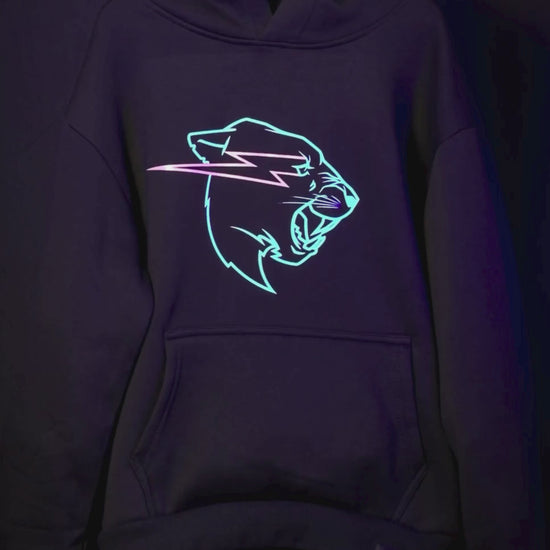 This super fun hoodie features the MrBeast panther head logo with a non-toxic glow-in-the-dark ink. Don't miss out – get your hoodie now and let the nighttime adventure begin!